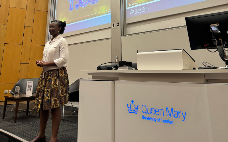 The final pitches were judged by Dr Appiah, Dr Moin, and Raj Anand Jaiswal a Queen Mary Masters student, offering a well-rounded panel that combined academic, industry, and student perspectives.