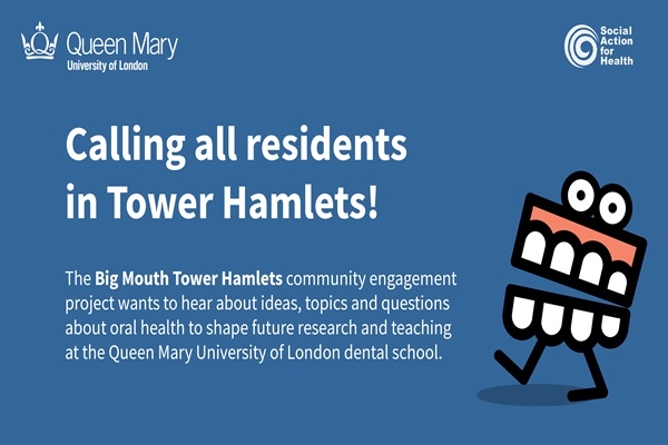 We are excited to launch the “Big Mouth” Tower Hamlets project, which aims to capture the ideas, topics, and questions that people in Tower Hamlets think we should look at in our future research in the dental school. This project is funded by the Centre of Public Engagement in collaboration with Social Action and Health and supported by the Tower Hamlets Council Volunteer Services (CVS).
