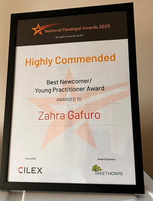 Just over a month ago, I was honoured to be Highly Commended as “Best Newcomer Paralegal 2025” at the National Paralegal Awards. This incredible recognition reminded me of every uncertain moment that came before it. From the rejections to the self-doubt, and how far I’ve come since first choosing to study law. Each a meaningful contribution to the career I am building today.