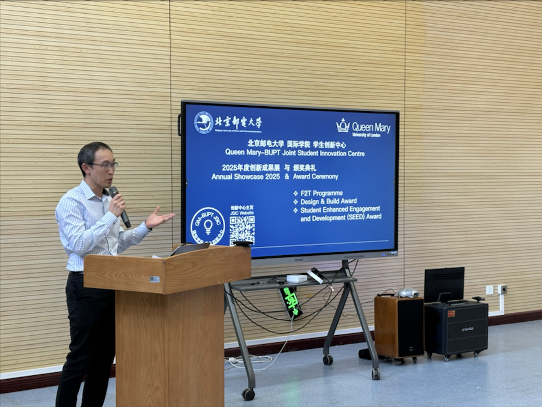 The showcase was attended by Queen Mary University of London (QMUL) and BUPT academic staff, external examiners, and students from Year 2 to Year 4, who were all actively engaged in the event. The audience had the opportunity to witness student excellence across various domains, from foundational learning to final-year research and design.