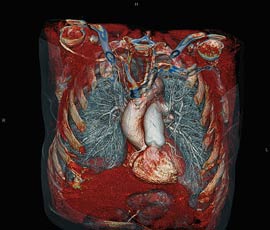 The Siemens Definition Flash CT is regarded as state-of-the-art by clinicians because of its unique ability to perform a detailed scan of the entire heart in just 250 milliseconds - less than half a heart beat. Image quality is still high, even if a moving object is being scanned, such as the heart.