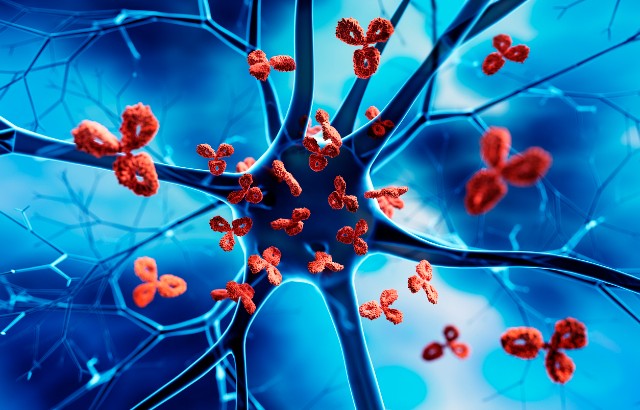 Antibodies are Y-shaped proteins that look for and latch onto foreign invading objects, such as bacteria and viruses, and mark them for destruction. In people with stiff person syndrome, certain antibodies latch onto GAD proteins. These GAD antibodies are found in very low levels in healthy people but in very high levels in people with stiff person syndrome, so their presence in blood or spinal fluid is one way that doctors are able to diagnose the condition.